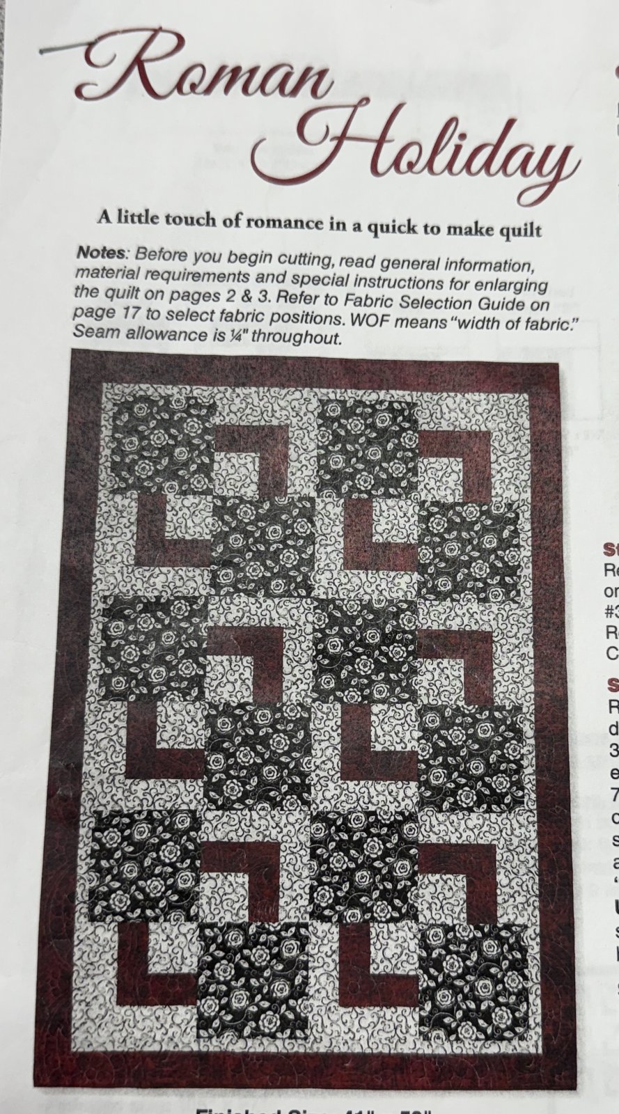 Price Includes instruction of Roman Holiday Quilt Top